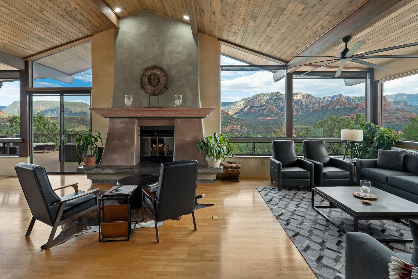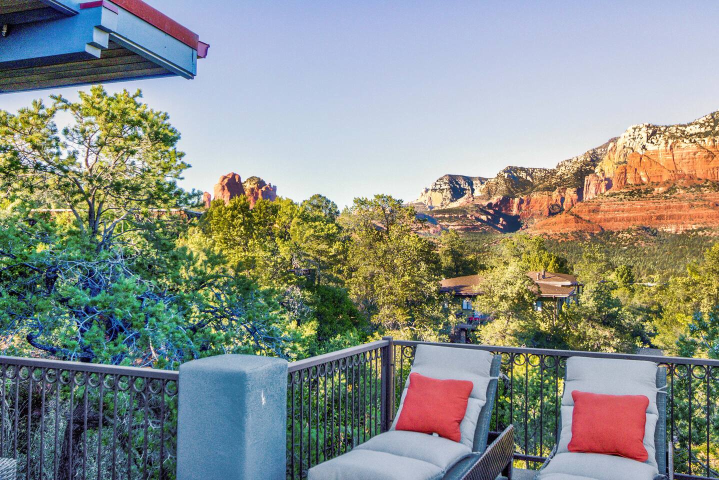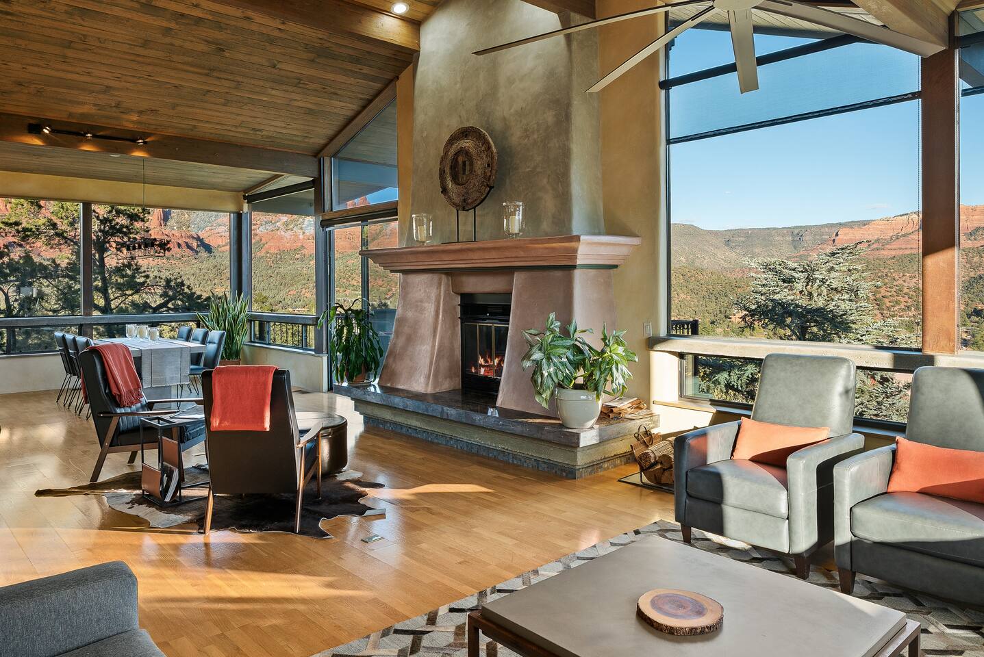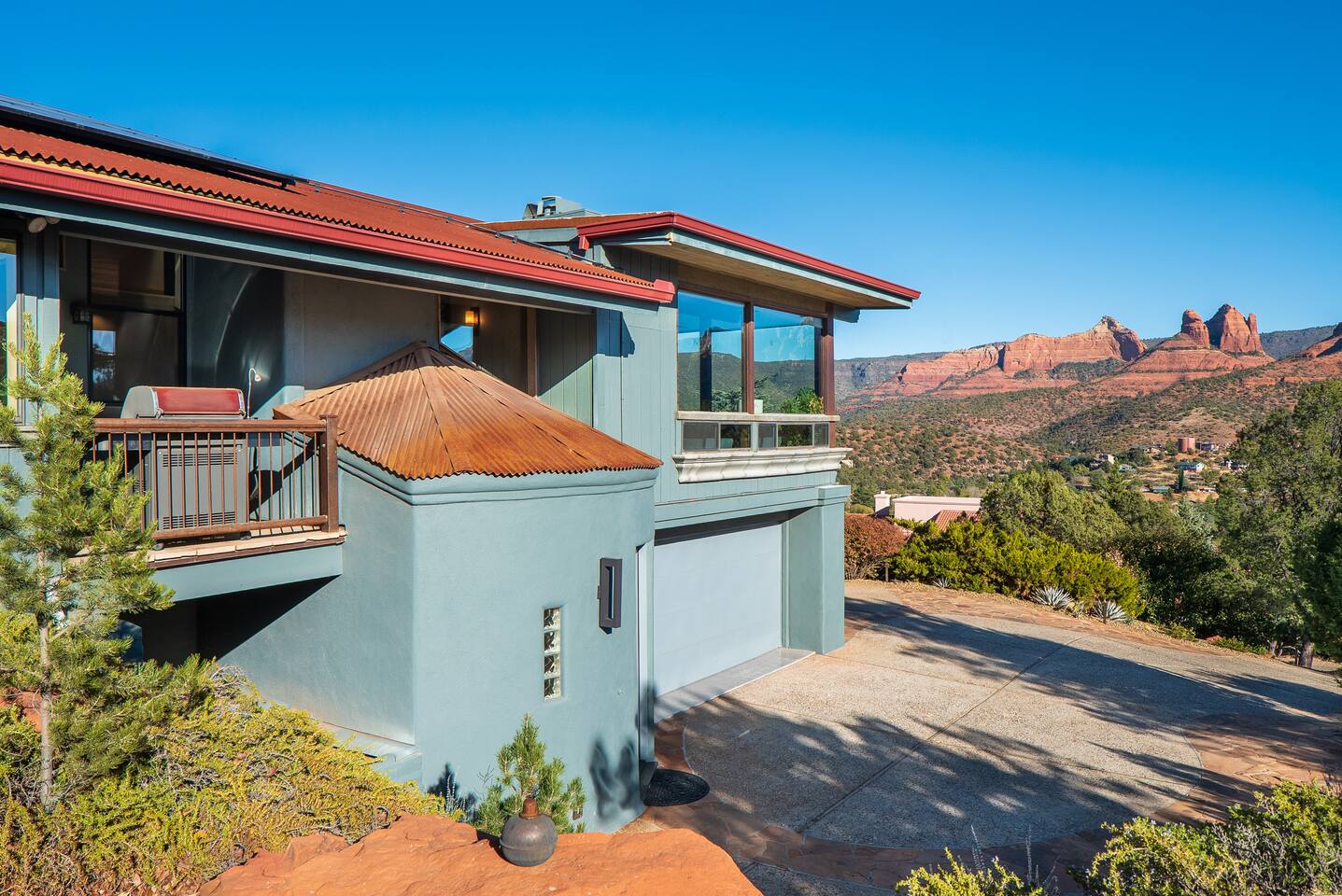 The Ridgeline House is a breathtaking rustic/modern 3-bed 3-bath home that delivers unforgettable 360-degree views of Sedona's majestic Red Rocks while embracing you in unparalleled luxury and comfort. Hand-plastered walls, a separate entrance to a downstairs suite, spectacular view windows and an in-garage Tesla charger are just a few unique features of this Sedona favorite. Nearby trail access is just minutes away - take our e-bikes to uptown shops and restaurants! TPT#21374997 Permit # 004992