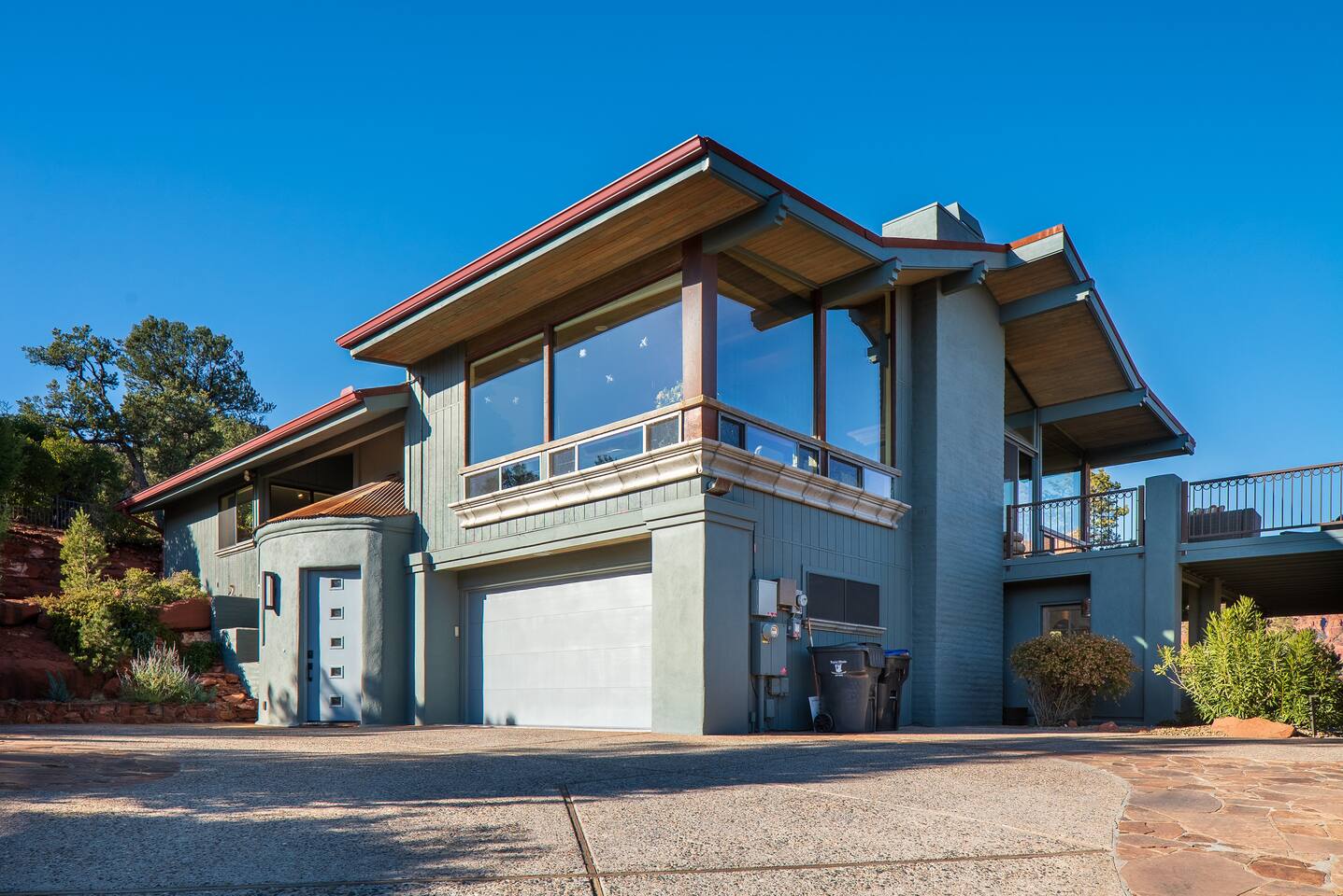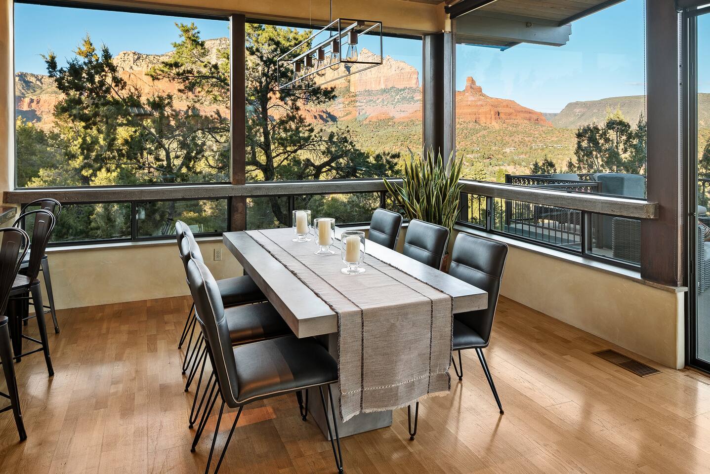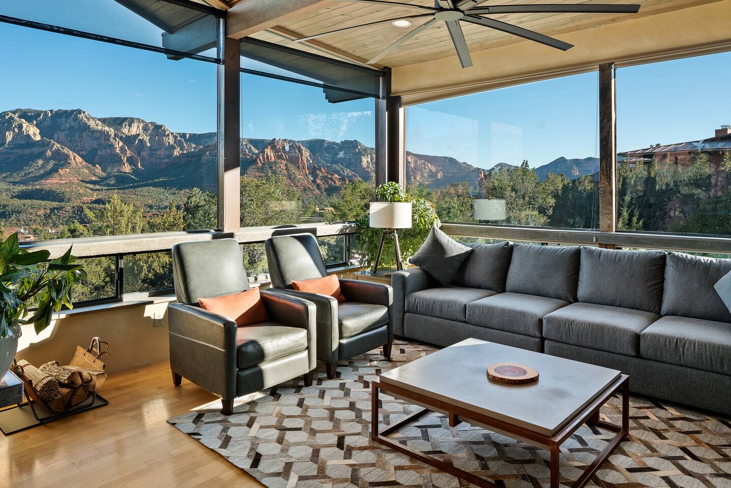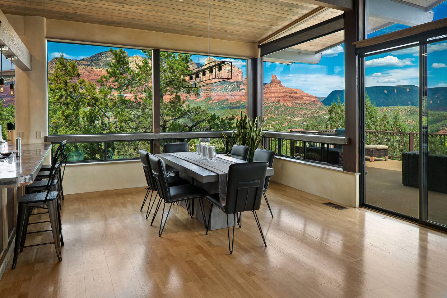 The Ridgeline House is a breathtaking rustic/modern 3-bed 3-bath home that delivers unforgettable 360-degree views of Sedona's majestic Red Rocks while embracing you in unparalleled luxury and comfort. Hand-plastered walls, a separate entrance to a downstairs suite, spectacular view windows and an in-garage Tesla charger are just a few unique features of this Sedona favorite. Nearby trail access is just minutes away - take our e-bikes to uptown shops and restaurants! TPT#21374997 Permit # 004992