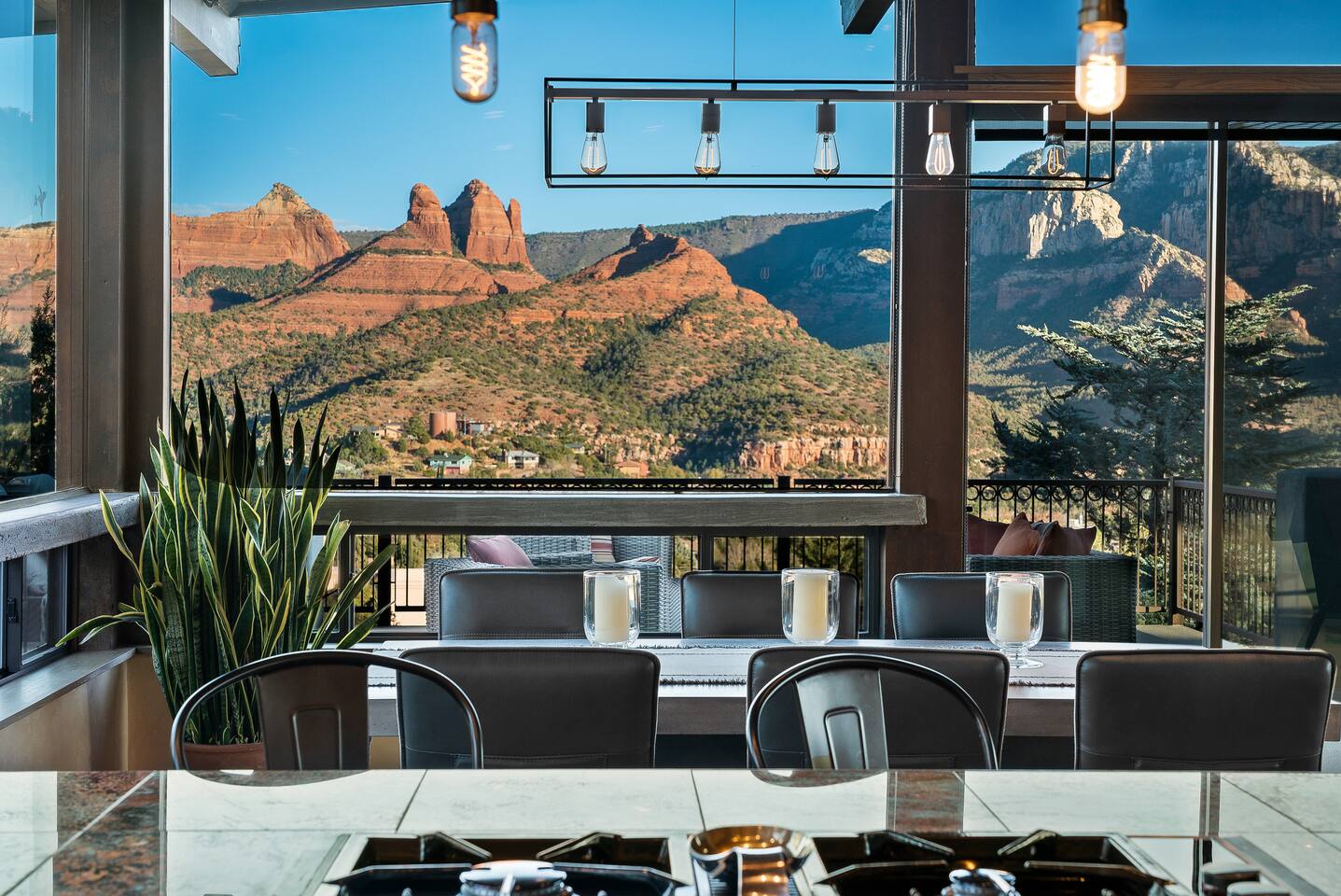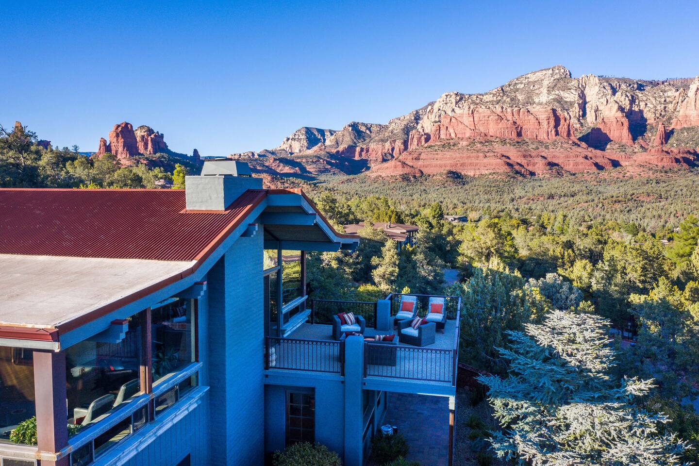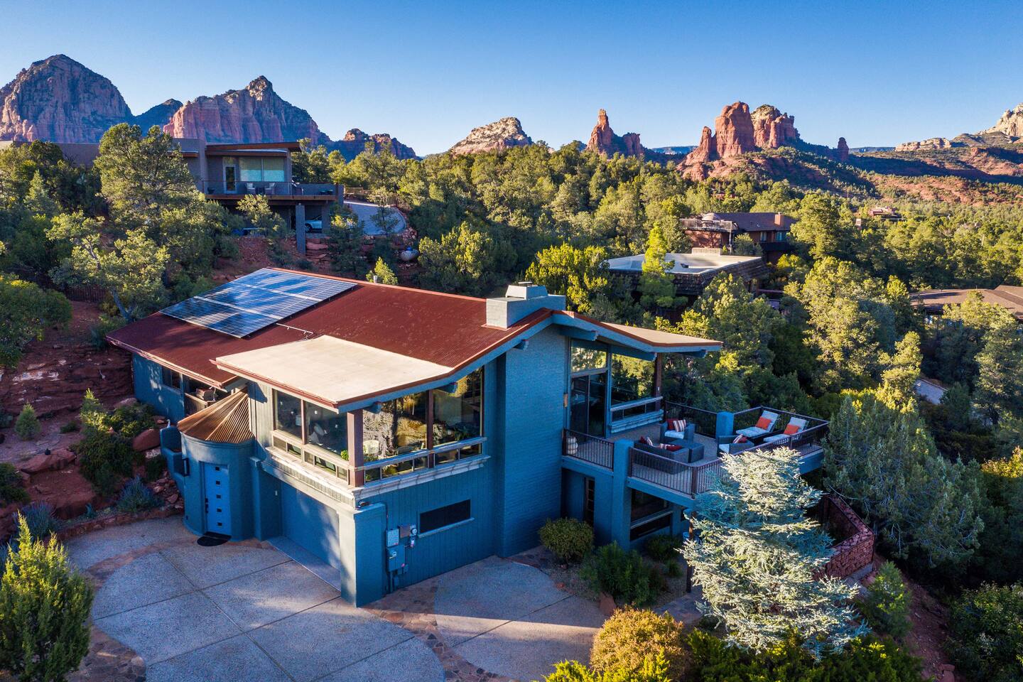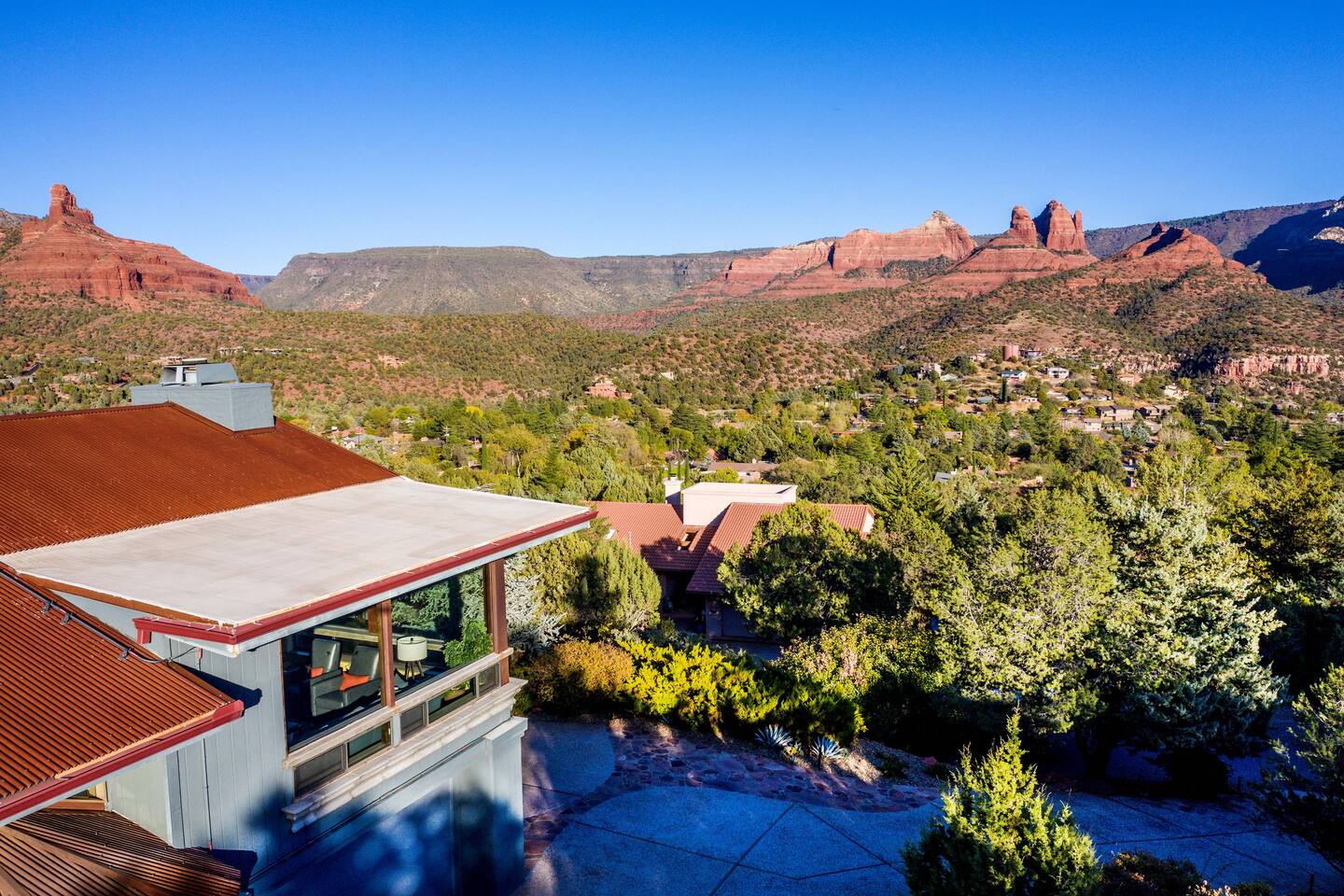The Ridgeline House is a breathtaking rustic/modern 3-bed 3-bath home that delivers unforgettable 360-degree views of Sedona's majestic Red Rocks while embracing you in unparalleled luxury and comfort. Hand-plastered walls, a separate entrance to a downstairs suite, spectacular view windows and an in-garage Tesla charger are just a few unique features of this Sedona favorite. Nearby trail access is just minutes away - take our e-bikes to uptown shops and restaurants! TPT#21374997 Permit # 004992