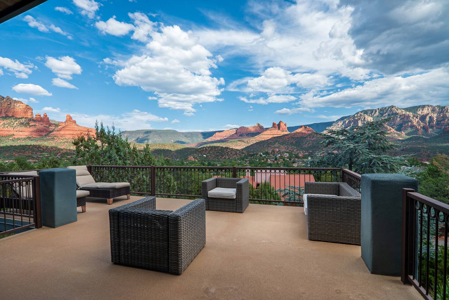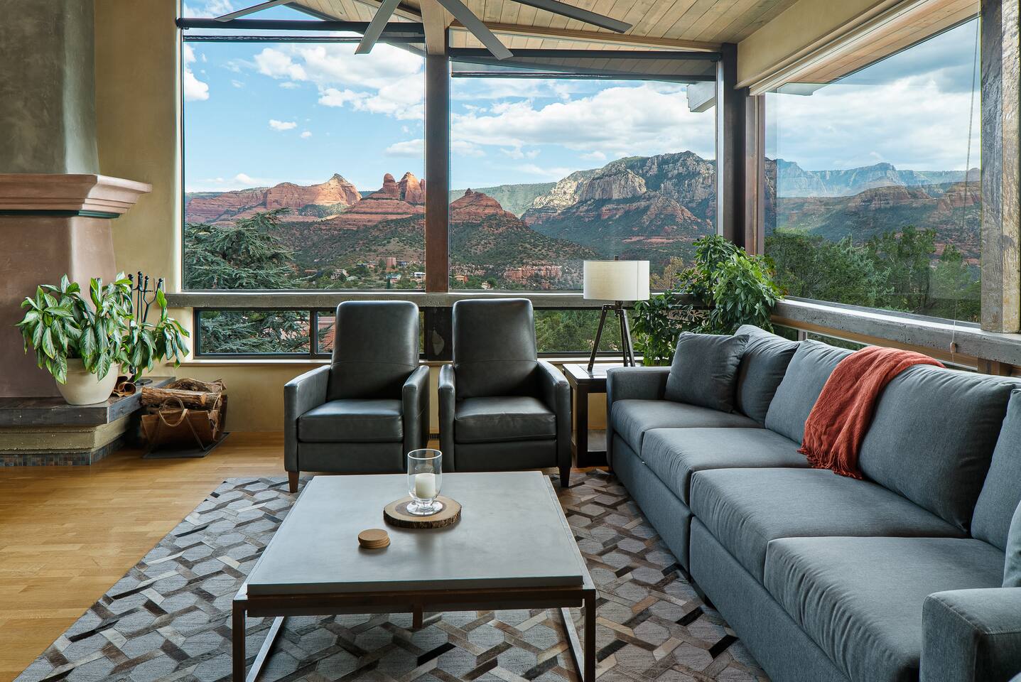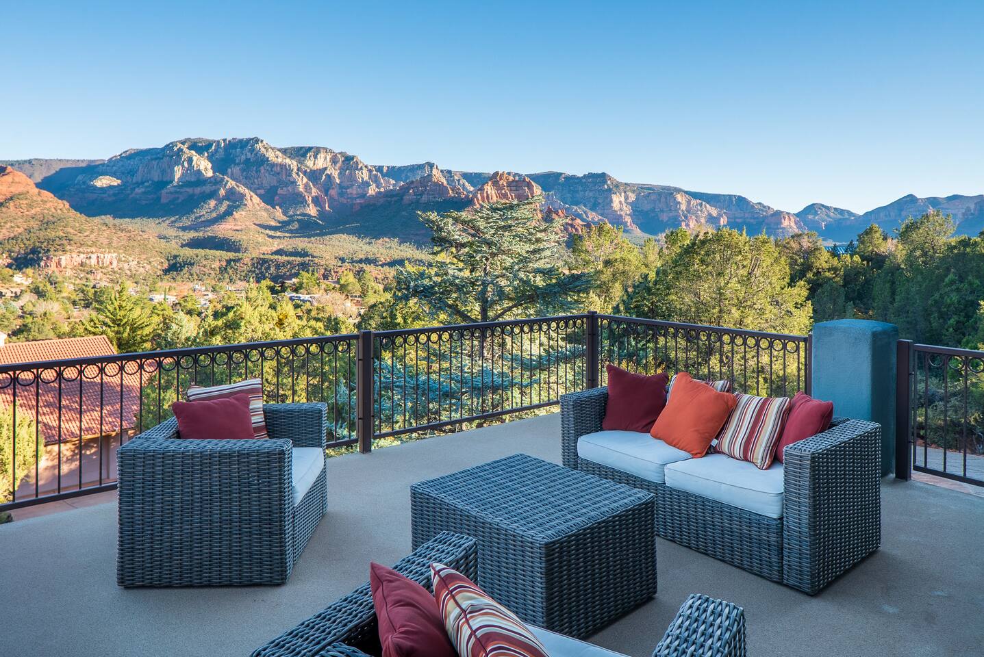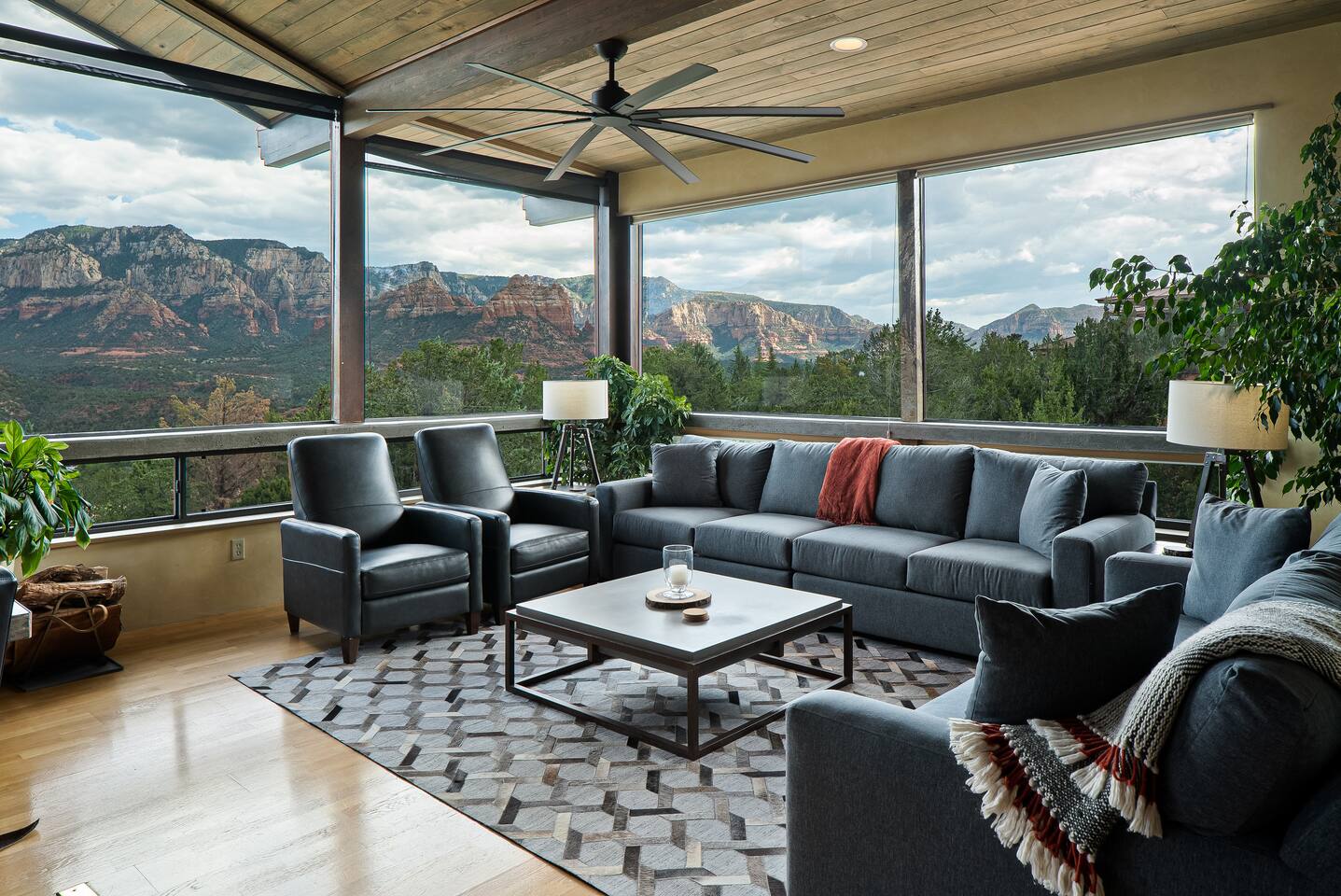 The Ridgeline House is a breathtaking rustic/modern 3-bed 3-bath home that delivers unforgettable 360-degree views of Sedona's majestic Red Rocks while embracing you in unparalleled luxury and comfort. Hand-plastered walls, a separate entrance to a downstairs suite, spectacular view windows and an in-garage Tesla charger are just a few unique features of this Sedona favorite. Nearby trail access is just minutes away - take our e-bikes to uptown shops and restaurants! TPT#21374997 Permit # 004992